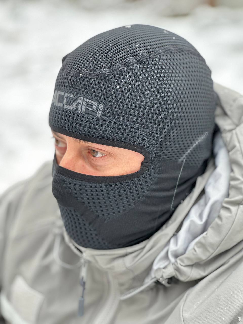 ● Grip Structure - weave to improve the fit of the balaclava in the neck area.