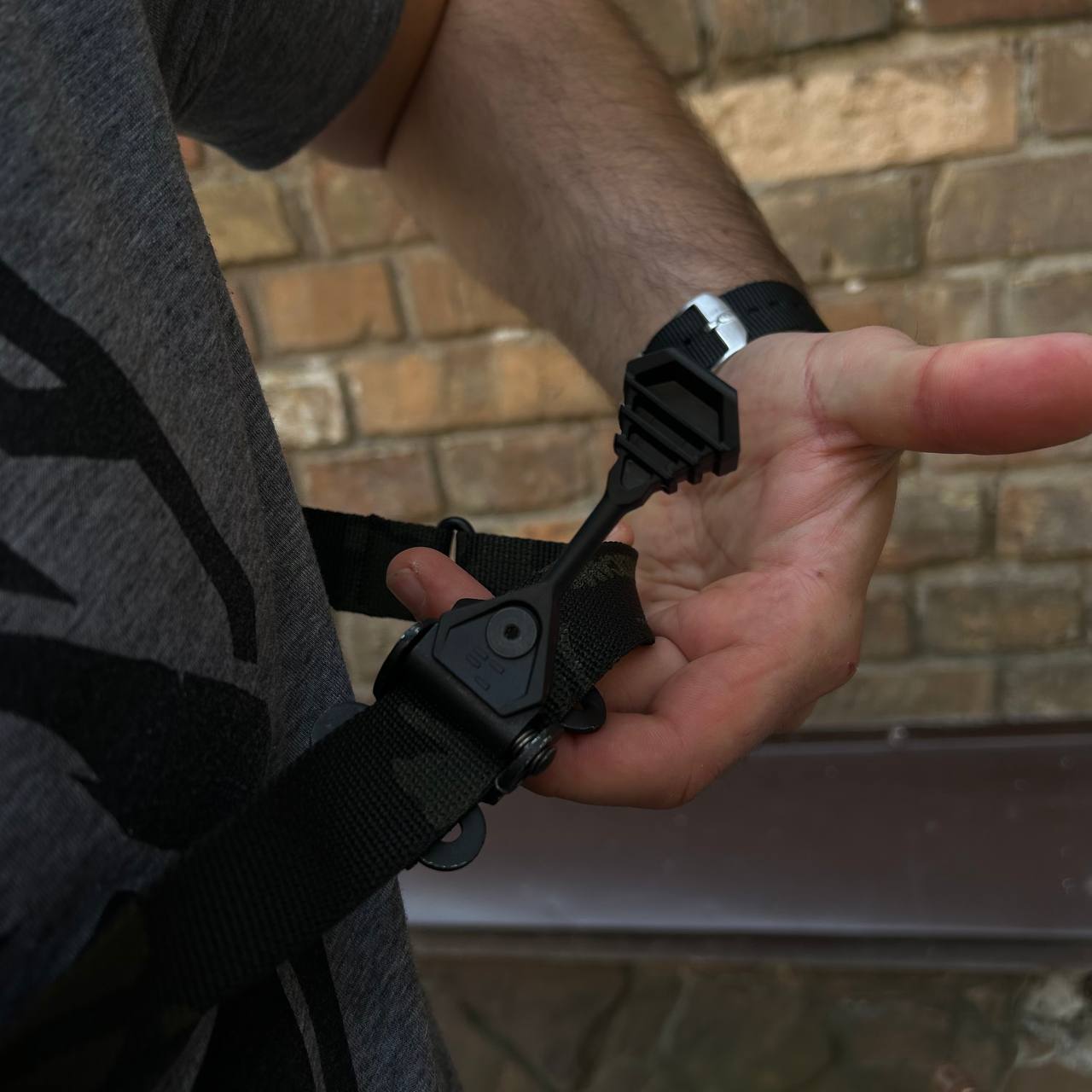 The Ferro Concepts Single Point Slingster® was developed due to the need for an adjustable padded sling on the weapon. There are some key differences between the Single Point Slingster® and the conventional 2-point Slingster®. This Slingster can only be used in a 1-point configuration. It has a narrower padding and a steel welded ring that allows for smooth movement of the weapon from the dominant shoulder to the non-dominant shoulder.